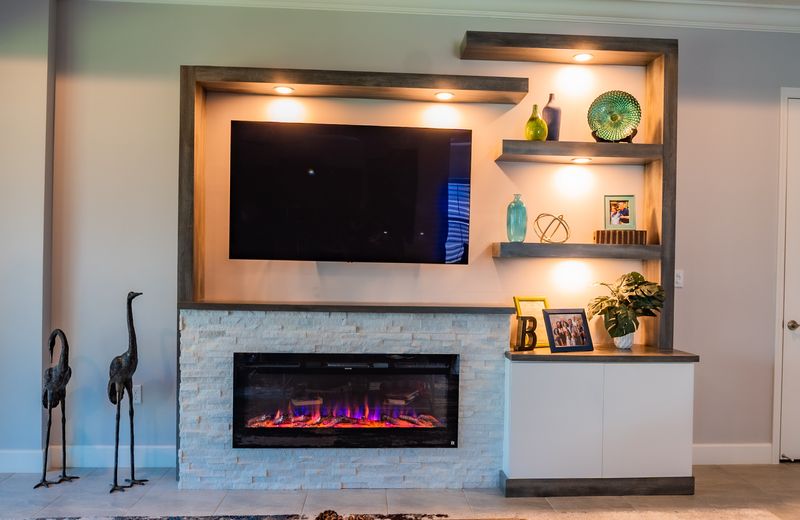 Transform your space with a custom wall unit designed for personality, storage, and comfort. From shelving to LED lighting and electric fireplaces, we bring warmth and texture to every project. Let’s create yours!