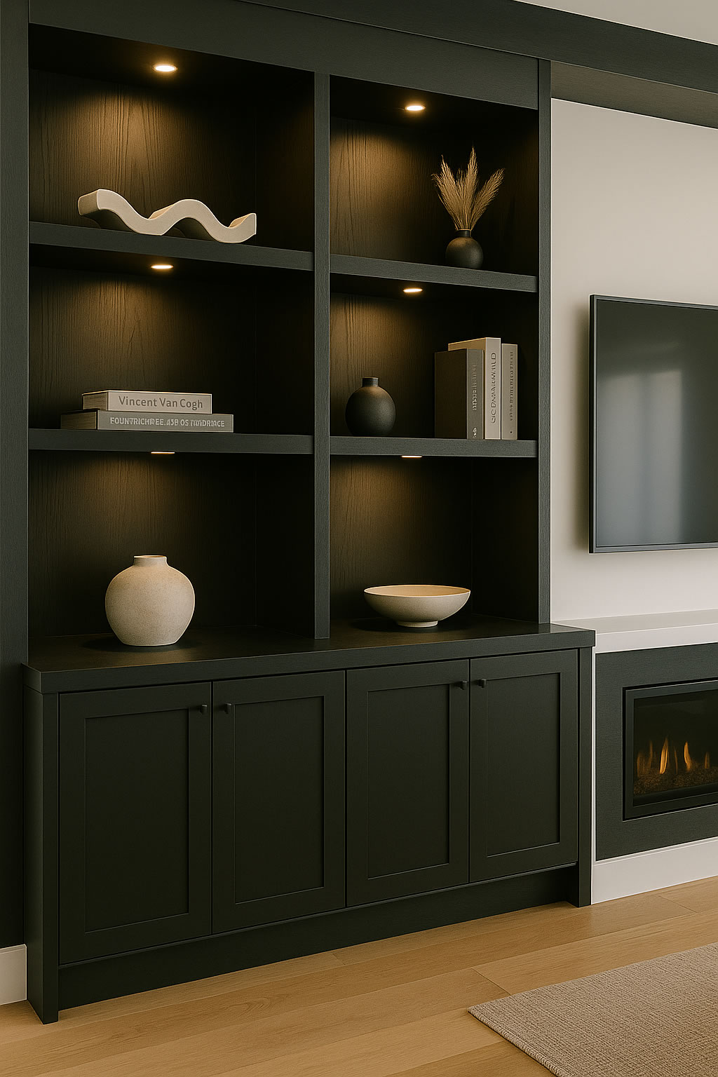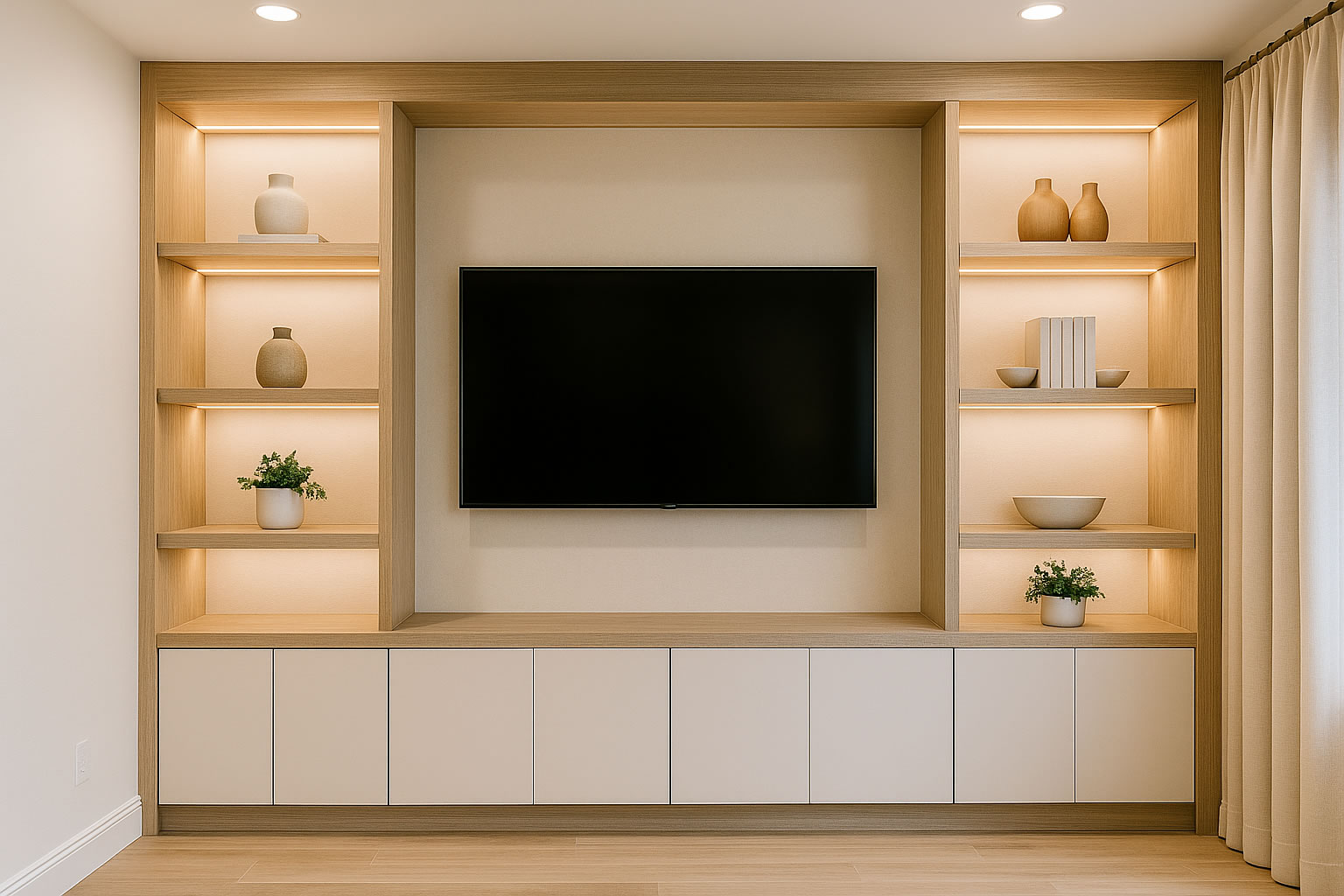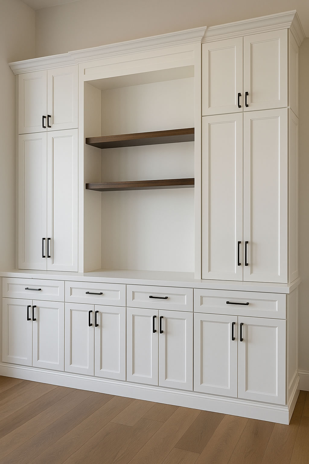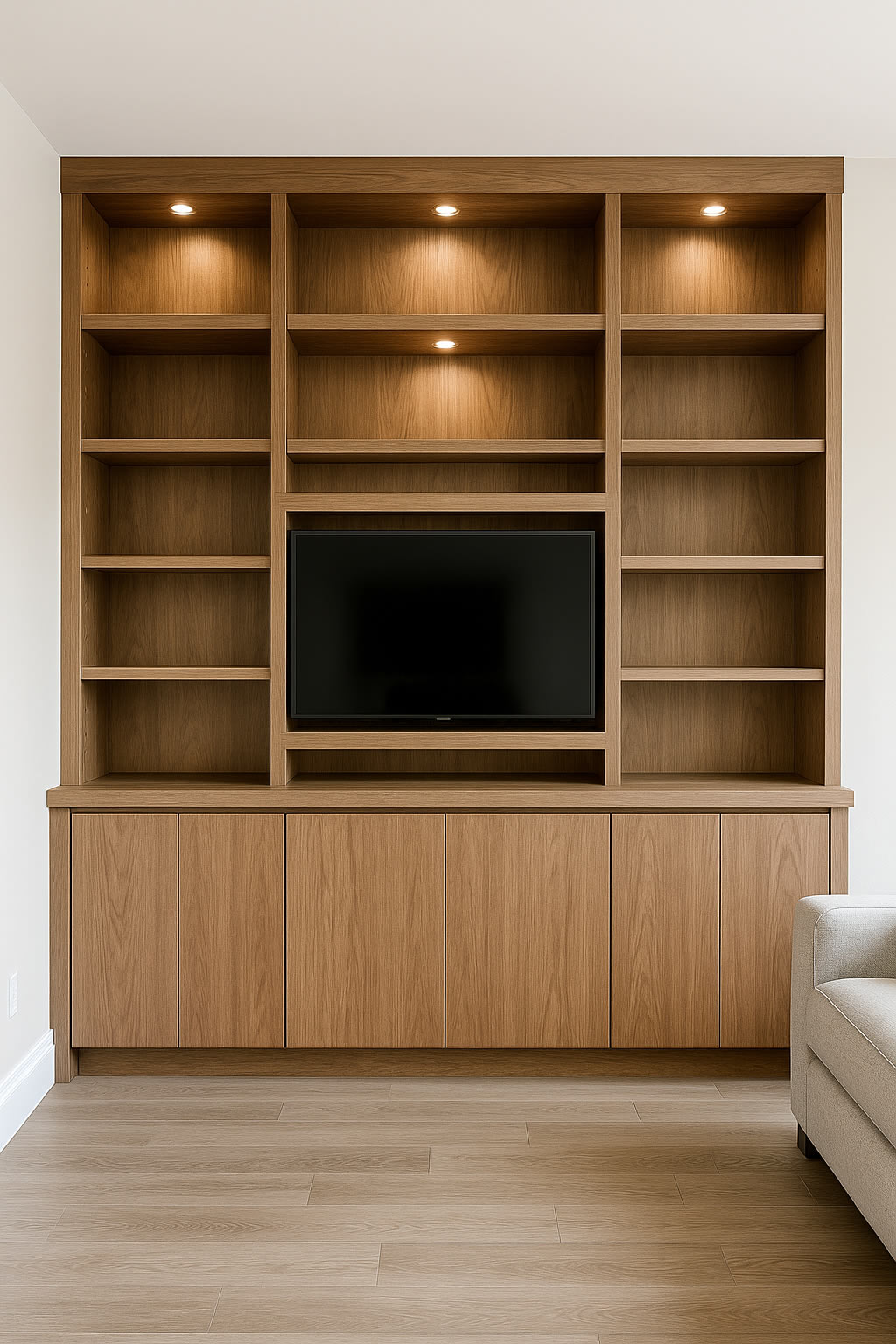 Our custom wall units are designed to fit seamlessly into your space, providing both practical storage and visual appeal. We focus on crafting high-quality, functional pieces that enhance your home’s aesthetic and make your space more organized and comfortable.